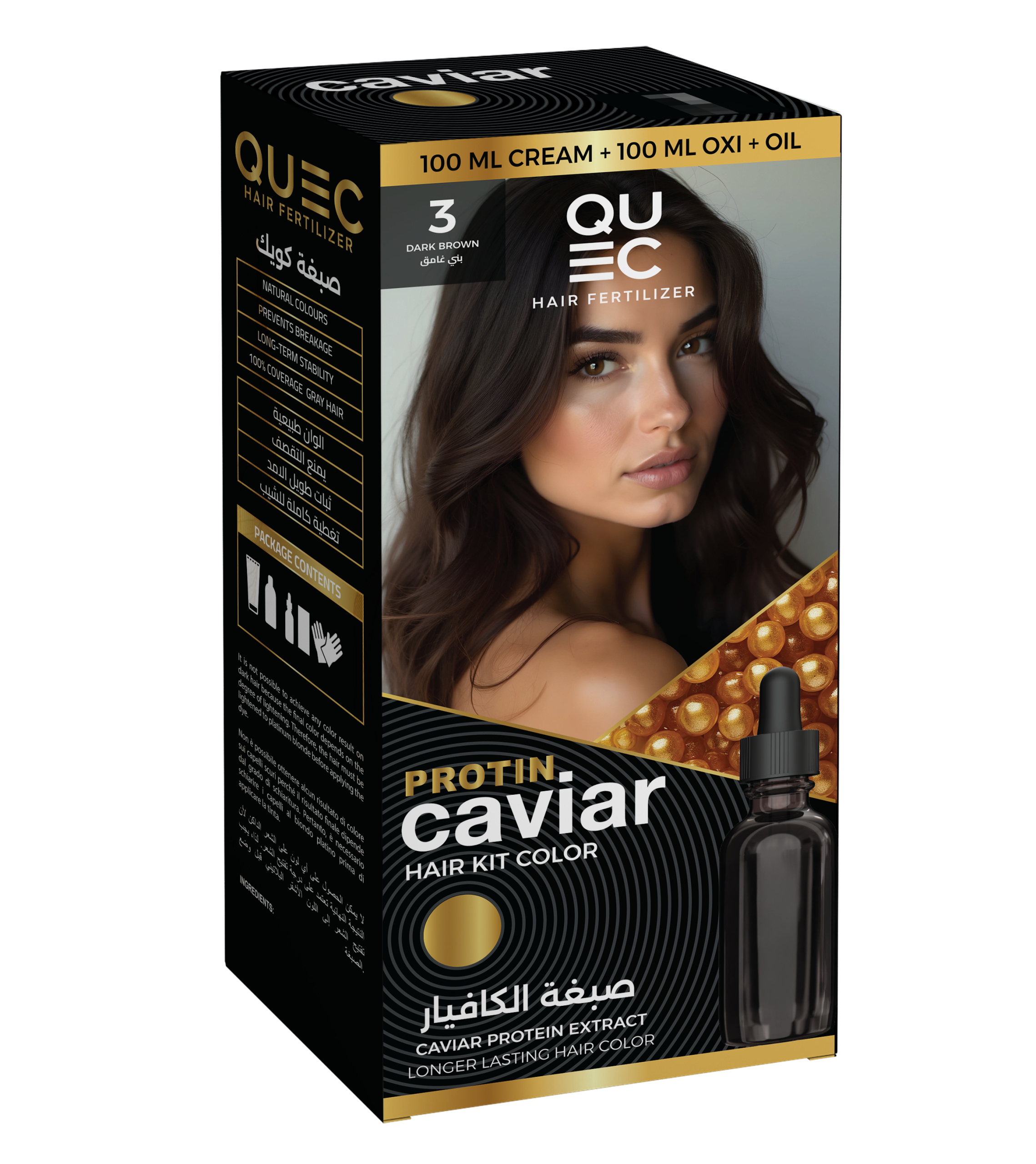 HAIR COLOR KIT CAVIAR PROTEIN QUEC 3 DARK BROWN